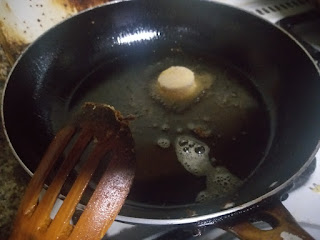 3. Pour coconut milk into container. Cut pandan leaf and bring it in the liquid.