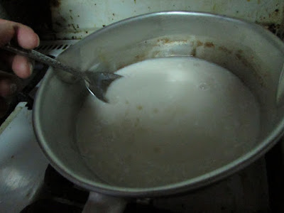 5. Pour hot coconut milk into sticky rice and waiting until sticky rice absorbed all coconut milk.